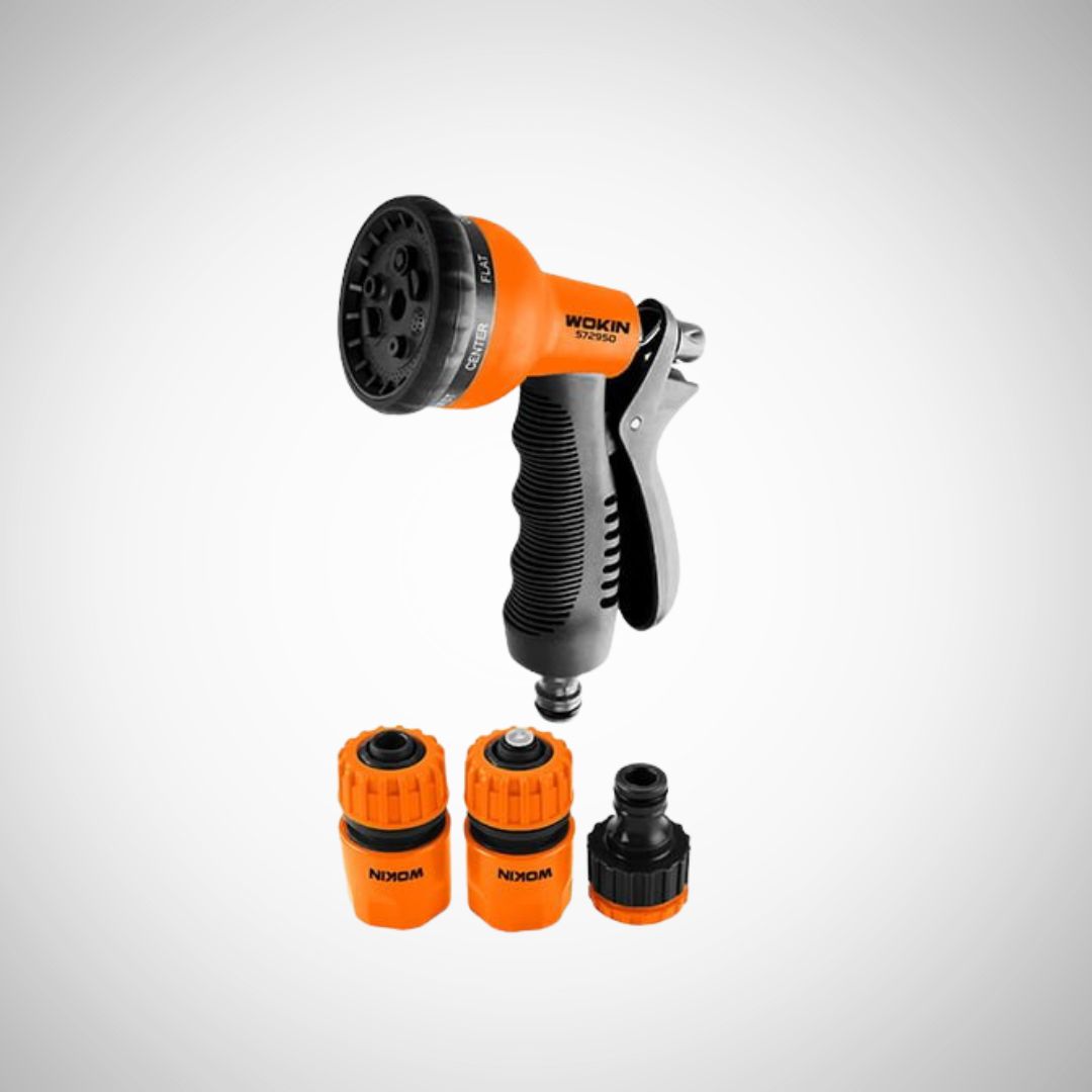 > 1pc 1/2″ hose connector > 1pc 1/2″ hose connector with stop > 1pc 1/2″x3/4″ tap adaptor > 1pc 8-pattern spray nozzle > Packing: Skin card