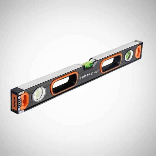> Heavy duty aluminium frame > Thickness: 1.5mm > Accuracy: 0.5mm /m > Three vial : 90 °, 180°, 45° > Two milled surface > Humanized rubber handle > Anti-shock end caps > Packing: shrink